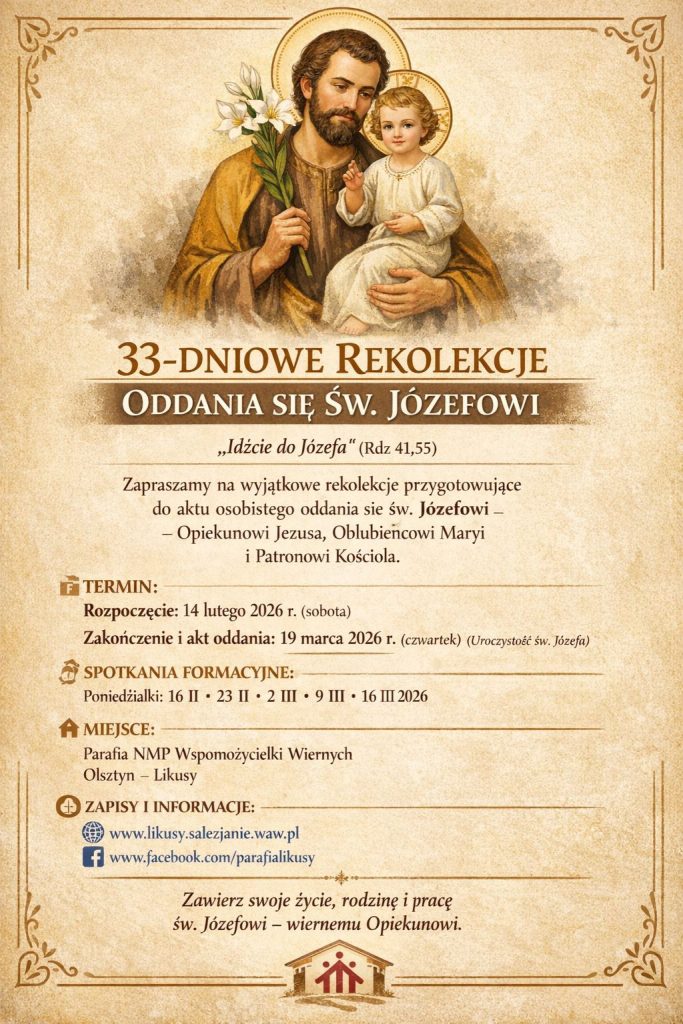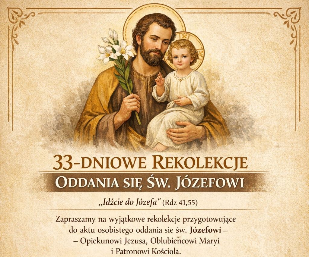 33 dniowe rekolekcje oddania się św. Józefowi / 14.02 – 19.03.26 / PLAN i formularz zgłoszenia